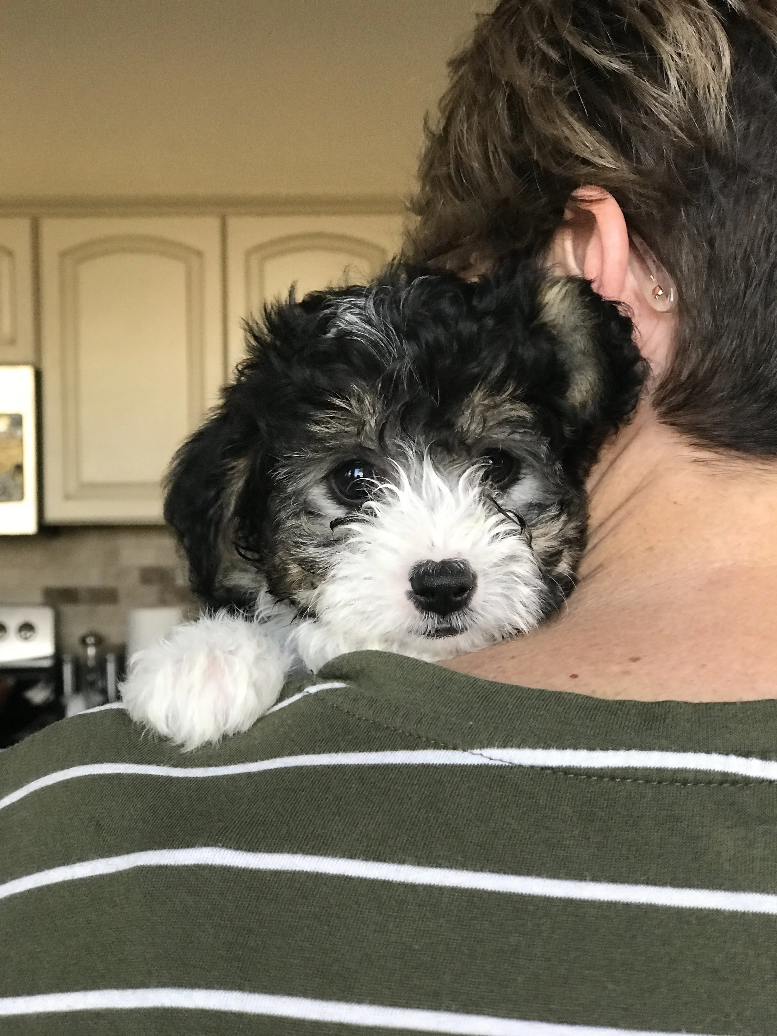 Sully is a gorgeous tricolor poodle. He is all lover with the most soulful eyes, we honestly think there’s a human in there! He is playful, curious, and full of energy! Sully is a "moyan" poodle which is a small standard poodle. He weighs 27 pounds and when bred with a Bernese he will produce mini - medium tricolor bernedoodles!